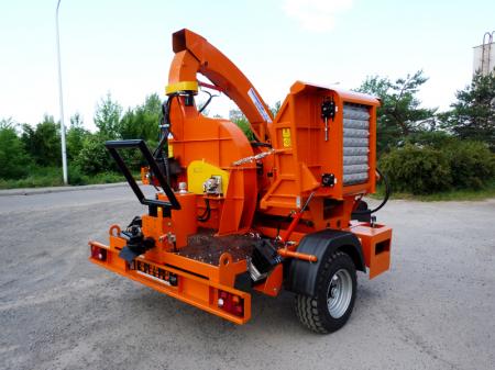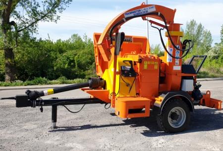 SKORPION 350 RB este o maşină de tocat lemn cu tambur care funcţionează cuplat la un tractor cu putere minimă 100 CP (540 rot/min).